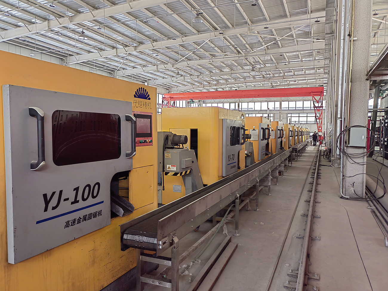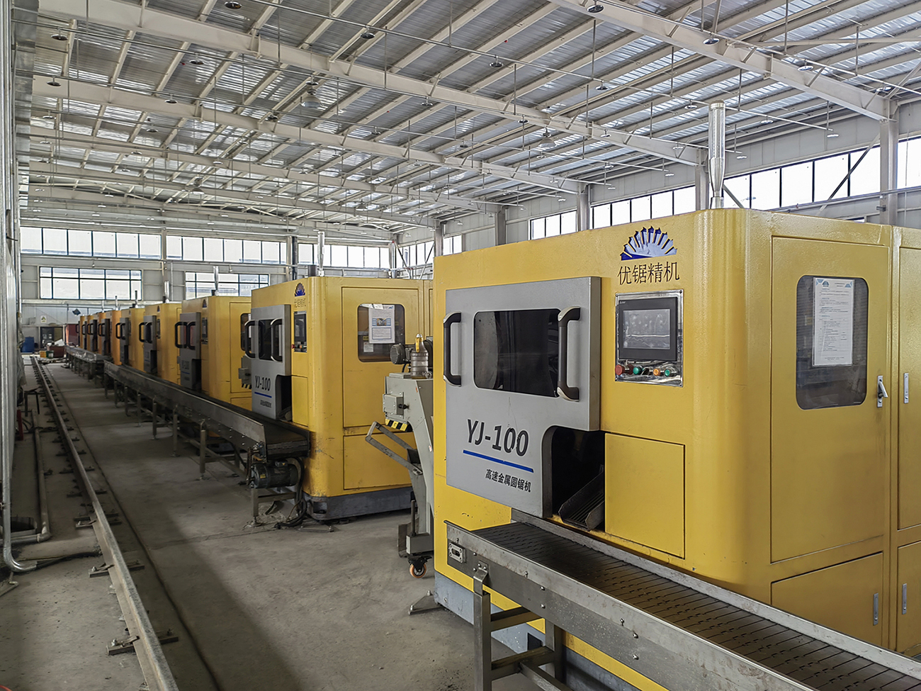 This mechanism is employed when the rhythm of the subsequent process after sawing exceeds the cutting rhythm of a single circular saw machine. By connecting multiple circular saw machines, the finished cut materials are transported collectively via conveyor belts into the next process. When the next process becomes full and cannot handle the materials in time, the circular saw machines can automatically pause production. Once the next process is ready to accept more materials, the saw machines transition from a paused state to an operational cutting state. This mechanism boasts high automation, stable and reliable operation, significantly reducing labor costs, enhancing production efficiency, and decreasing equipment investment costs.