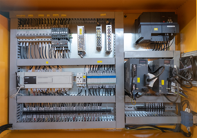 Electronic Control System Adopting systems from Mitsubishi, Japan, and Xinjie, China, to enrich customer choices and ensure the accuracy, reliability, and efficiency of program transmission. An electric heat exchanger is installed in the electrical cabinet to maintain the air quality within the control box, reducing the failure rate due to environmental factors.